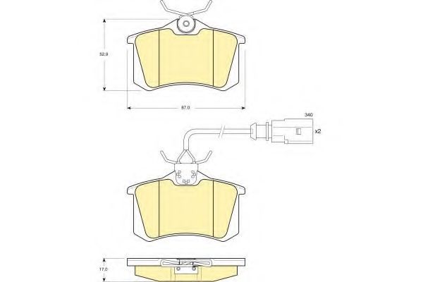 Ширина (мм): 87 Высота [мм]: 53 Толщина [мм]: 17,2 Датчик износа: С интегрированным датчиком износа Длина предупреждающего контакта [мм]: 341 Опции: С винтами тормозных сателлитов Тормозная система: Lucas