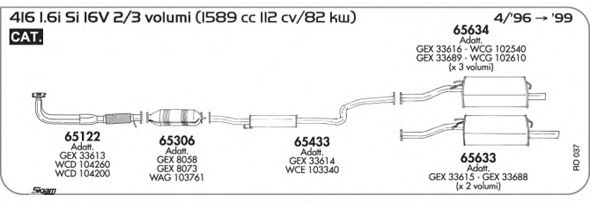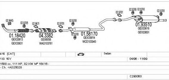 Для автомобилей с катализатором; Г. вып. от - 04/1996; Г. вып. до - 11/1999; код двигателя - 16K16; № шасси до - AD25028