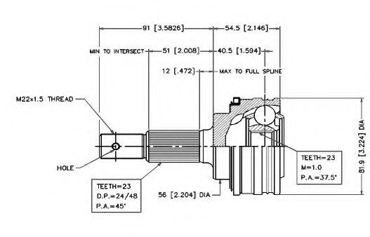 Внутреннее зубчатое соединение со стороны дифференциала: 23