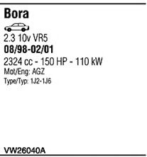 Раб. объем (округленный) - 2,3; тип модели - i VR5; вар. оснащения - Sedan Stationwagon; раб. объем (точн.) - 2324; код двигателя - AGZ; № шасси от - >1J-X-000001; № шасси до - <1J-1-900000; Исполнение днищевой планки - Kat; мощность - 110