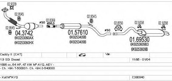 Глушитель в сборе: VW, CADDY II универсал (9K9B)